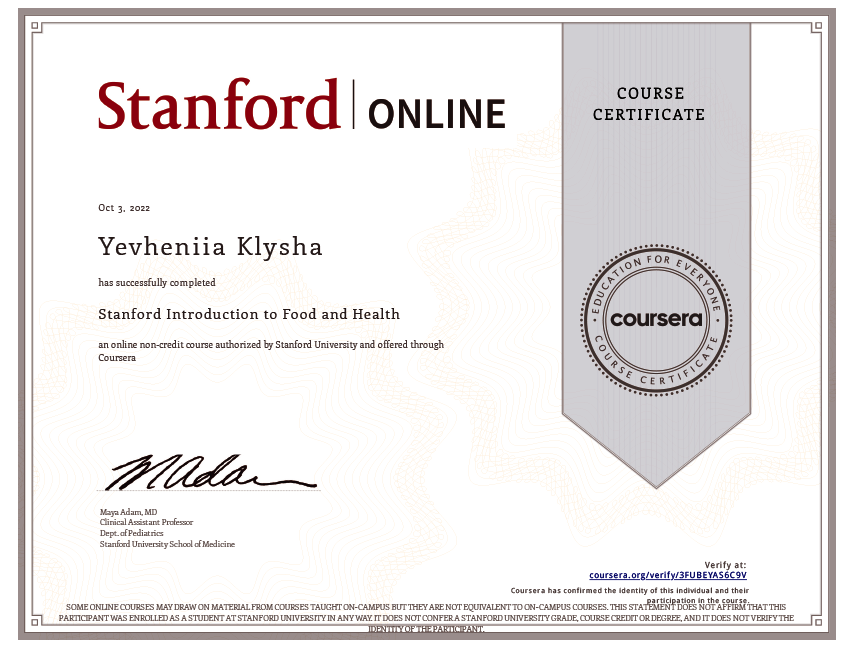 Перший ступінь спеціалізації «Health Coach» : збалансоване харчування, сон, фізична активність